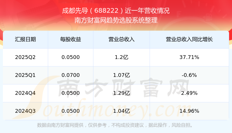 成都先導(dǎo)發(fā)布2025年第二季度財(cái)報(bào)。實(shí)現(xiàn)總營收1.2億元,同比增長37.71%;扣非凈利潤同比增長693.45%至3640.63萬元。
