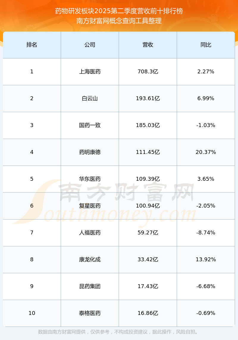 按照南方財(cái)富網(wǎng)概念查詢工具統(tǒng)計(jì),該股所屬板塊為藥物研發(fā)板塊,該板塊共有72只股票,成都先導(dǎo)2025第二季度營收在該板塊中排名為第59名,該板塊2025第二季度營收排名前十的股票如下表: