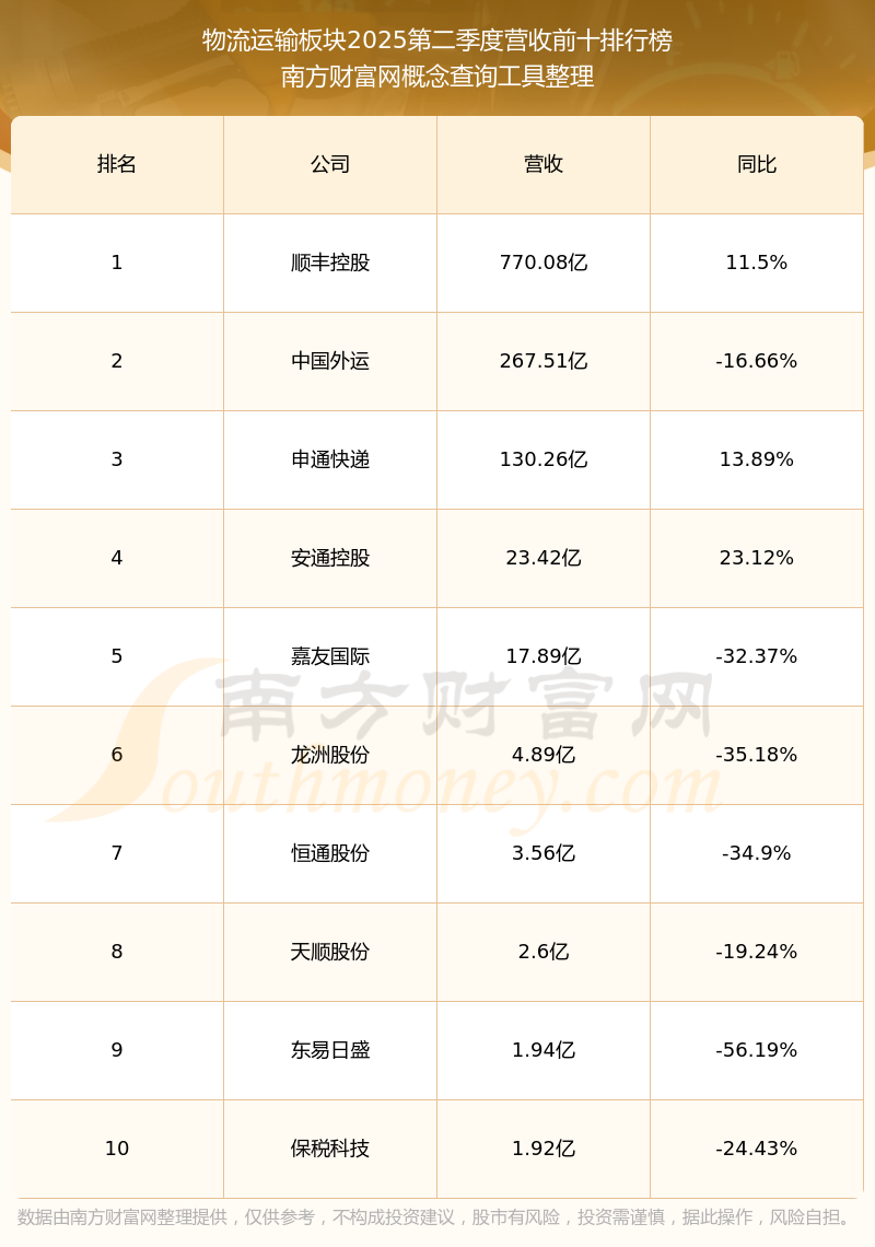 按照南方財富網(wǎng)概念查詢工具統(tǒng)計,該股所屬板塊為物流運輸板塊,該板塊共有11只股票,中谷物流2025第二季度營收在該板塊中排名為第11名,該板塊2025第二季度營收排名前十的股票如下表: