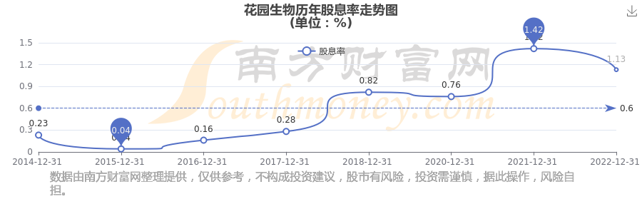 花園生物最新一次公布的分紅方案為10派1.4元。本次權(quán)益分派股權(quán)登記日為2023年5月23日,除權(quán)除息日為2023年5月24日,派息日為2023年5月24日。