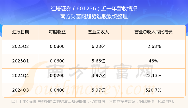 紅塔證券(601236)披露2025年第二季度報告,報告期實現(xiàn)營收6.23億元,同比-2.68%;歸母凈利潤3.75億元,同比13.71%;扣非凈利潤3.63億元,同比8.7%;基本每股收益0.08元。