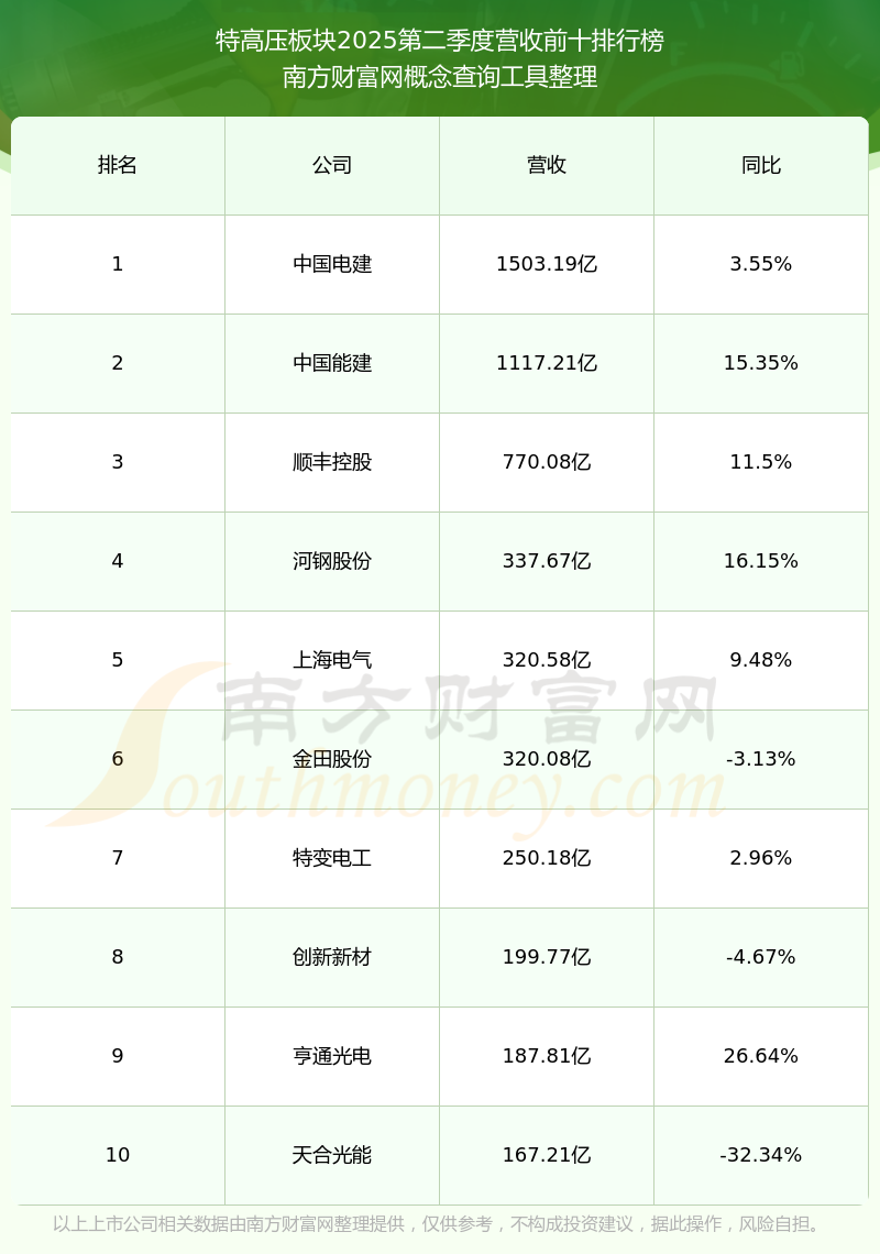 按照南方財(cái)富網(wǎng)概念查詢工具統(tǒng)計(jì),該股所屬板塊為特高壓板塊,該板塊共有177只股票,四方股份2025第二季度營收在該板塊中排名為第47名,該板塊2025第二季度營收排名前十的股票如下表: