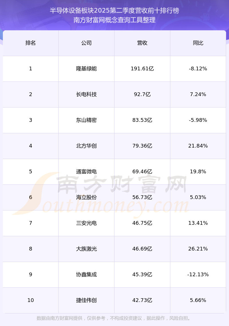 按照南方財富網(wǎng)概念查詢工具統(tǒng)計,該股所屬板塊為半導(dǎo)體設(shè)備板塊,該板塊共有169只股票,金海通2025第二季度營收在該板塊中排名為第131名,該板塊2025第二季度營收排名前十的股票如下表: