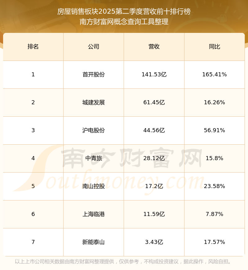 按照南方財(cái)富網(wǎng)概念查詢工具統(tǒng)計(jì),該股所屬板塊為房屋銷售板塊,該板塊共有7只股票,蘇州高新2025第二季度營收在該板塊中排名為第7名,該板塊2025第二季度營收排名前十的股票如下表: