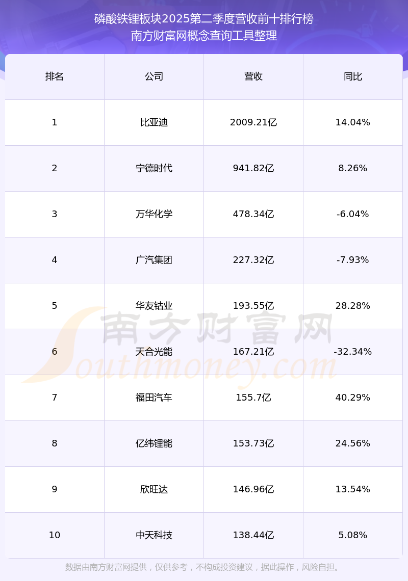 按照南方財(cái)富網(wǎng)概念查詢工具統(tǒng)計(jì),該股所屬板塊為磷酸鐵鋰板塊,該板塊共有114只股票,萬(wàn)潤(rùn)新能2025第二季度營(yíng)收在該板塊中排名為第43名,該板塊2025第二季度營(yíng)收排名前十的股票如下表: