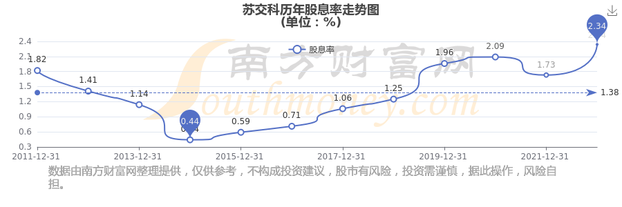 蘇交科最新一次公布的分紅方案:10派1.4元。