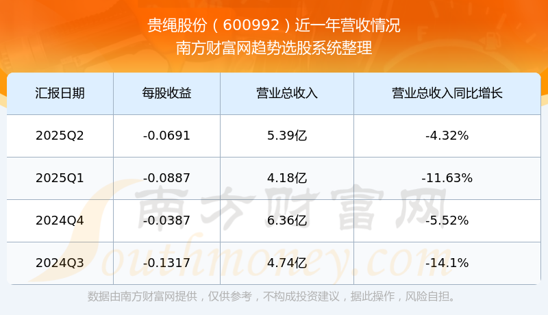 貴繩股份(600992)披露2025年第二季度報告,報告期實(shí)現(xiàn)營收5.39億元,同比-4.32%;歸母凈利潤-1694.9萬元,同比-959.13%;扣非凈利潤-1950.28萬元,同比-1700.63%。