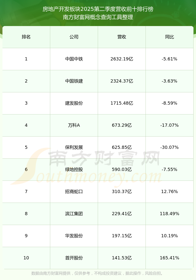 按照南方財(cái)富網(wǎng)概念查詢工具統(tǒng)計(jì),該股所屬板塊為房地產(chǎn)開發(fā)板塊,該板塊共有143只股票,萬(wàn)通發(fā)展2025第二季度營(yíng)收在該板塊中排名為第129名,該板塊2025第二季度營(yíng)收排名前十的股票如下表: