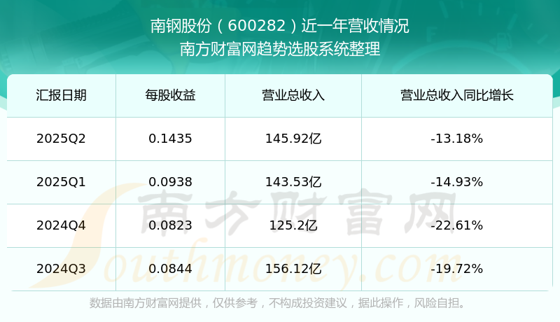 南鋼股份(600282)披露2025年第二季度報(bào)告,報(bào)告期實(shí)現(xiàn)營收145.92億元,同比-13.18%;歸母凈利潤(rùn)8.85億元,同比30.21%;扣非凈利潤(rùn)6.5億元,同比10.3%。
