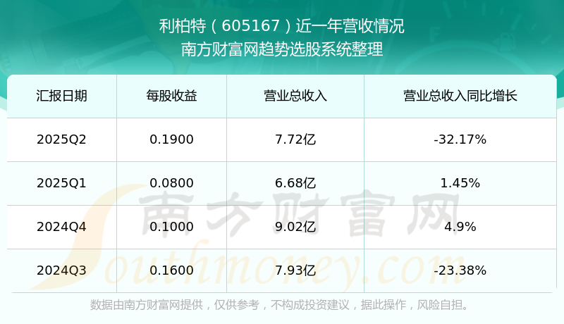 利柏特2025年第二季度財(cái)報(bào)顯示,公司主營(yíng)收入7.72億元,同比-32.17%;歸母凈利潤(rùn)8570.6萬(wàn)元,同比-5.87%;扣非凈利潤(rùn)8313.97萬(wàn)元,同比-9.52%。