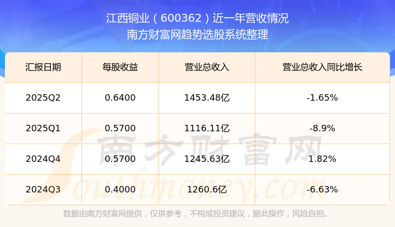 江西銅業(yè)股票近一年營收情況如下表: