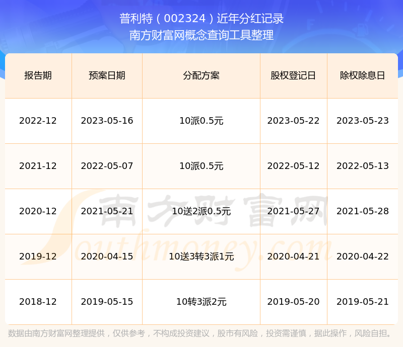 近年普利特分紅情況如下表所示: