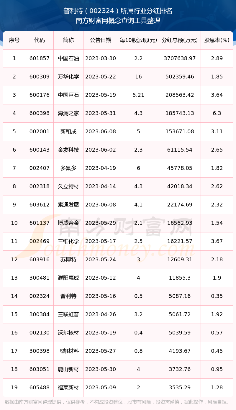 二、普利特002324行業(yè)分紅排名