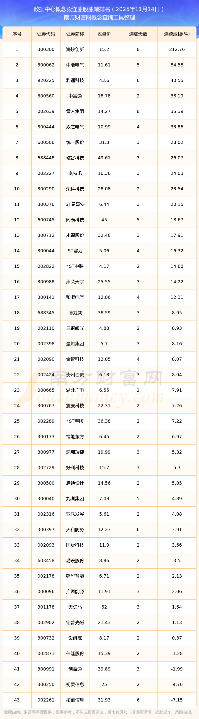 2025年11月14日數(shù)據(jù)中心概念股連漲股漲幅排名