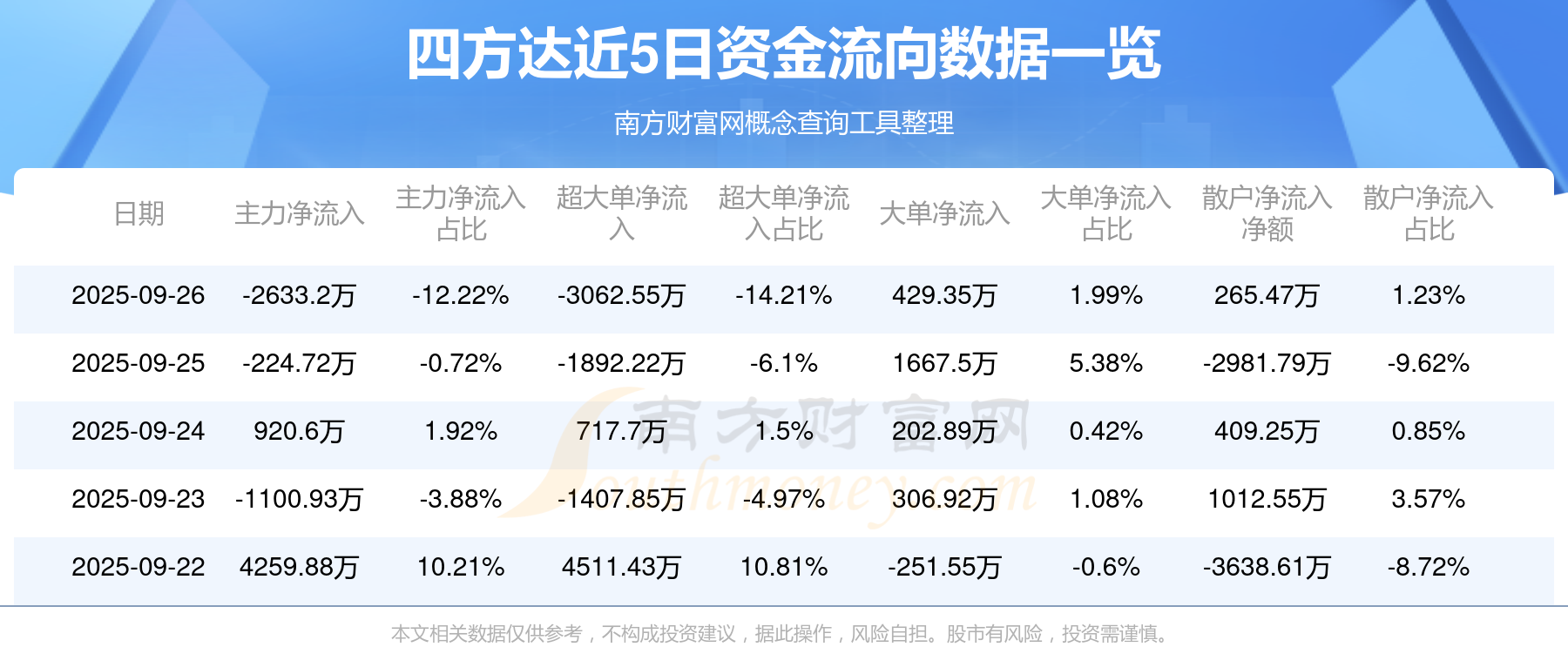 近5日資金流向一覽見下表:
