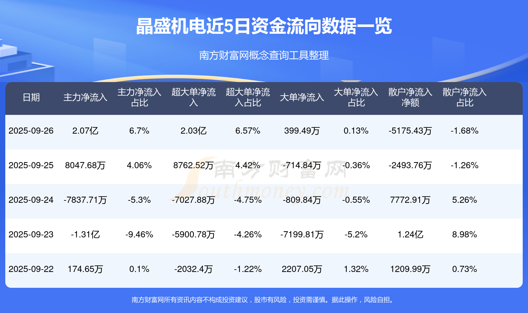 9月26日該股主力資金凈流入2.07億元,超大單資金凈流入2.03億元,大單資金凈流入399.49萬元,中單資金凈流出1.55億元,散戶資金凈流出5175.43萬元。