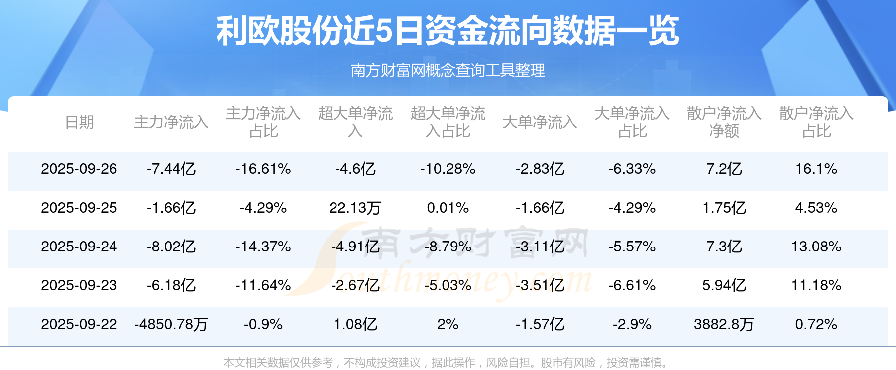9月26日消息,利歐股份資金凈流出7.44億元,超大單資金凈流出4.6億元,換手率13.84%,成交金額44.76億元。