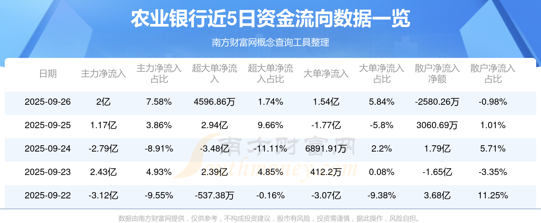 近5日資金流向一覽見下表: