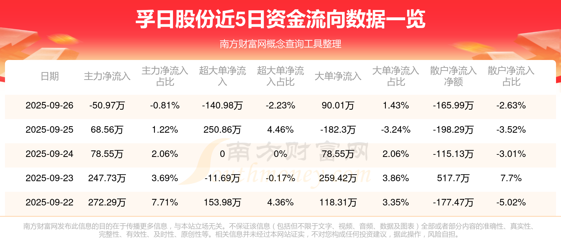 近5日資金流向一覽見下表: