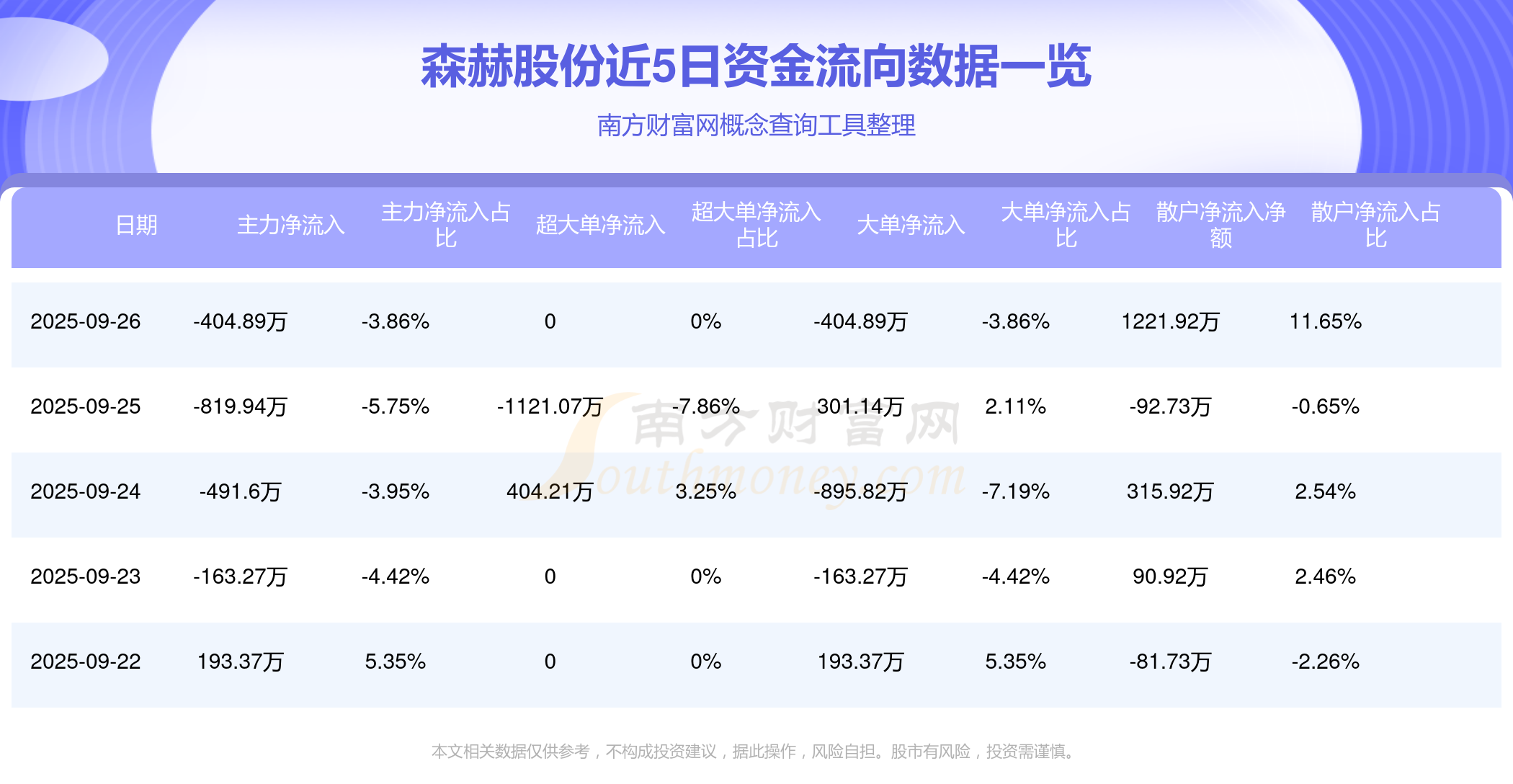 9月26日消息,森赫股份9月26日主力凈流出404.89萬元,大單凈流出404.89萬元,散戶凈流入1221.92萬元。