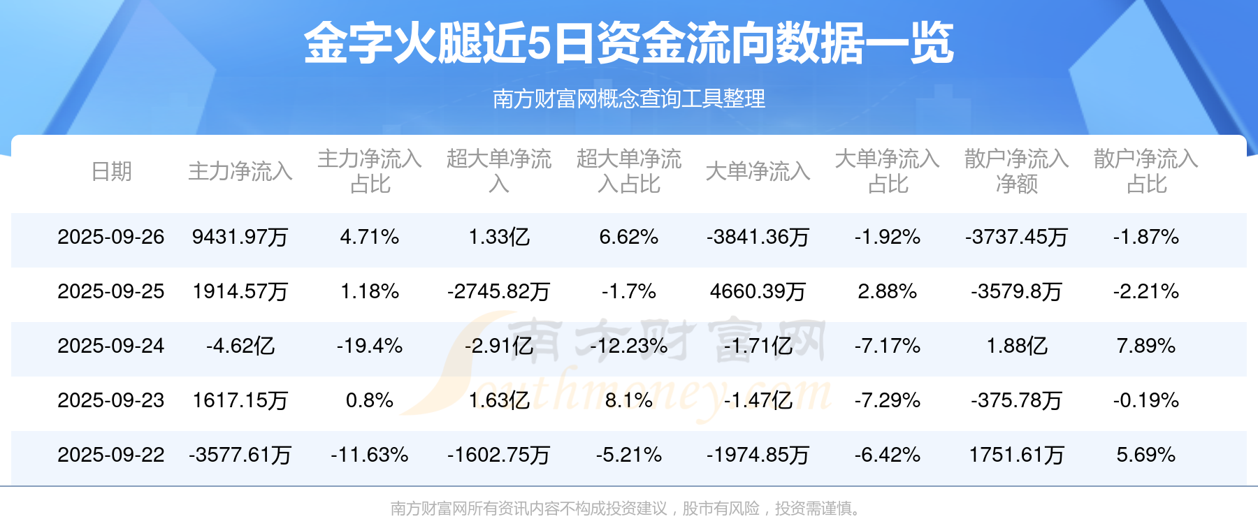 9月26日消息,資金凈流入9431.97萬元,超大單資金凈流入1.33億元,成交金額20.04億元。