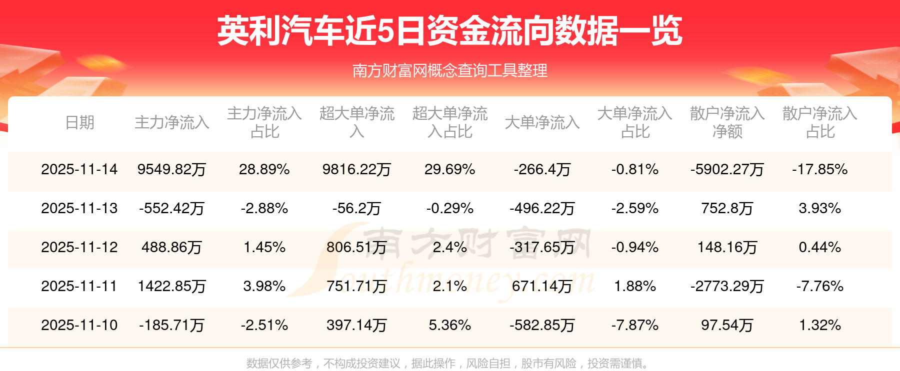 數(shù)據(jù)由南方財(cái)富網(wǎng)提供,僅供參考,不構(gòu)成投資建議,據(jù)此操作,風(fēng)險(xiǎn)自擔(dān)。股市有風(fēng)險(xiǎn),投資需謹(jǐn)慎。