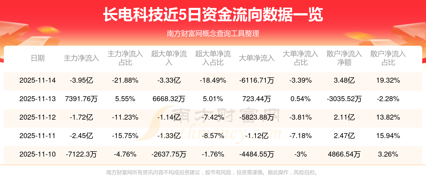11月14日消息,長電科技資金凈流出3.95億元,超大單資金凈流出3.33億元,換手率2.7%,成交金額18.03億元。
