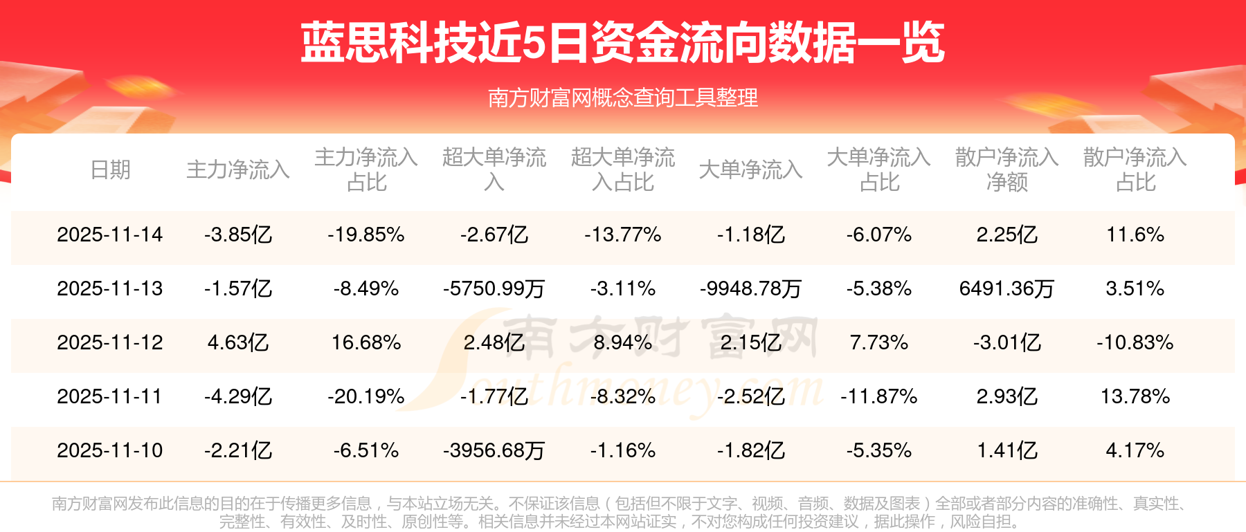 資金流向數(shù)據(jù)方面,11月14日主力資金凈流流出3.85億元,超大單資金凈流出2.67億元,大單資金凈流出1.18億元,散戶資金凈流入2.25億元。