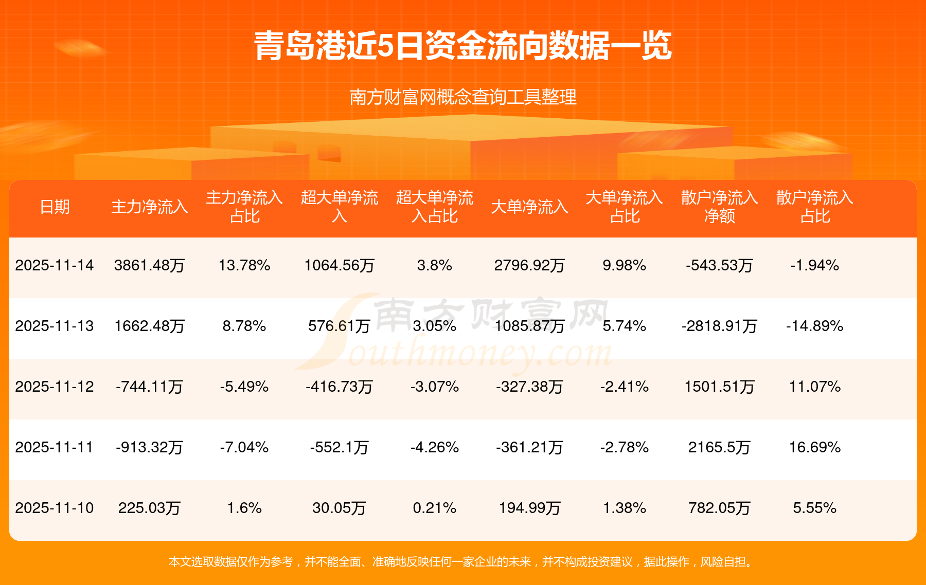 近5日資金流向一覽見下表: