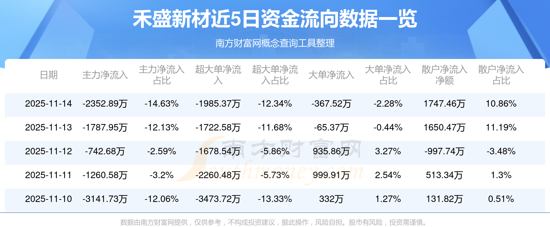 近5日資金流向一覽見下表: