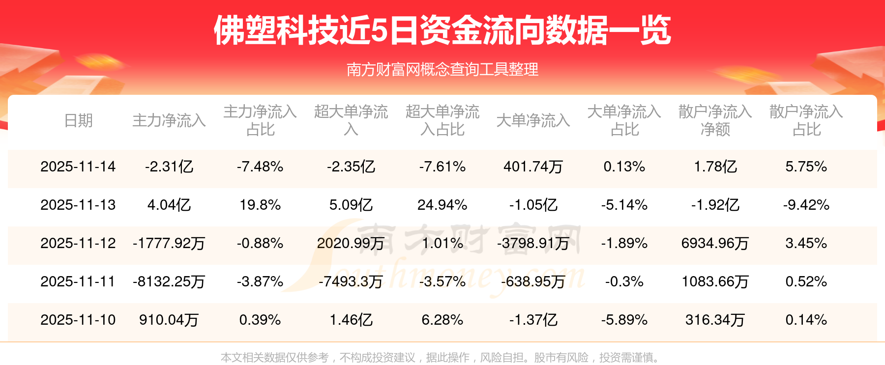 11月14日消息,佛塑科技主力凈流出2.31億元,超大單凈流出2.35億元,散戶凈流入1.78億元。