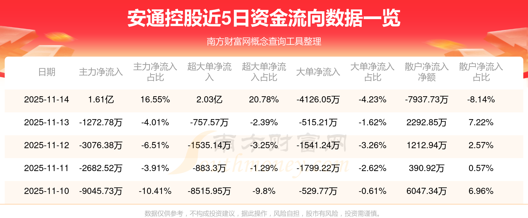 11月14日該股主力凈流入1.61億元,超大單凈流入2.03億元,大單凈流出4126.05萬元,中單凈流出8197.22萬元,散戶凈流出7937.73萬元。