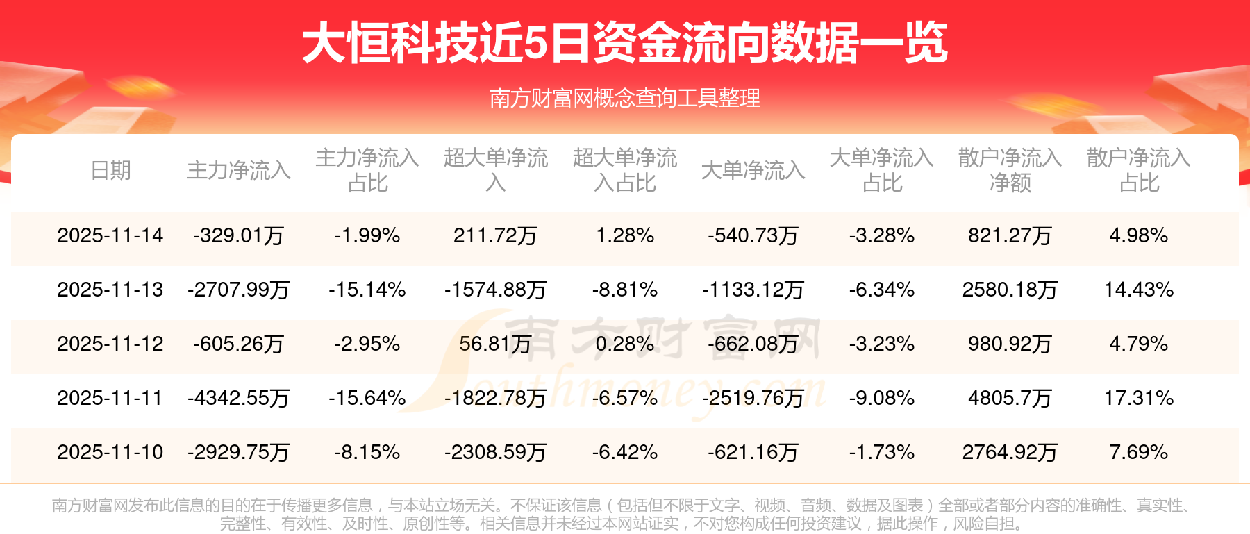 11月14日消息,大恒科技11月14日主力資金凈流出329.01萬元,超大單資金凈流入211.72萬元,大單資金凈流出540.73萬元,散戶資金凈流入821.27萬元。