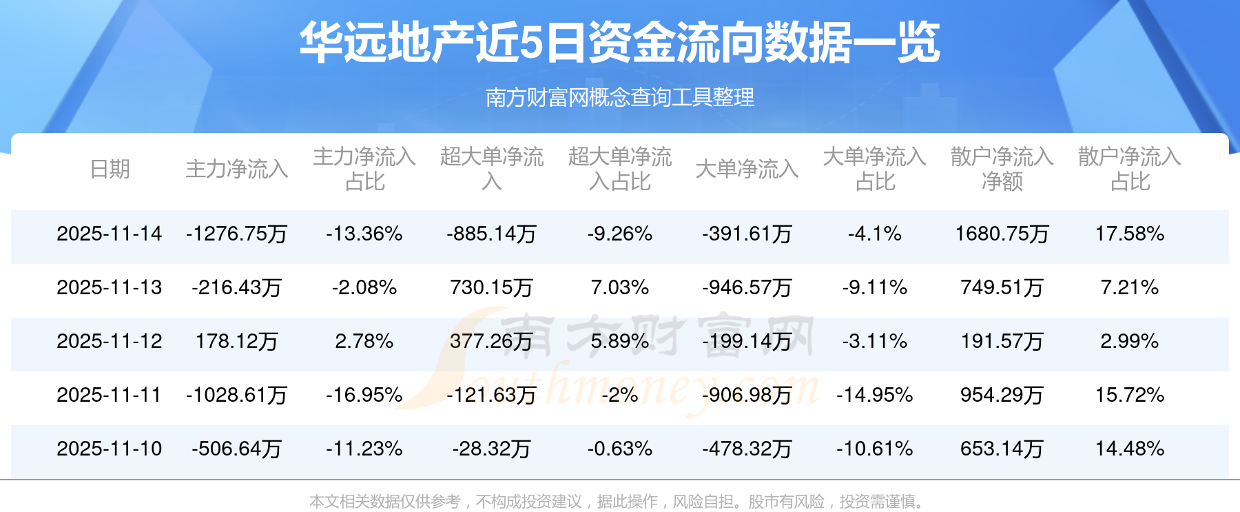 11月14日消息,華遠(yuǎn)地產(chǎn)主力資金凈流出1276.75萬元,超大單資金凈流出885.14萬元,散戶資金凈流入1680.75萬元。