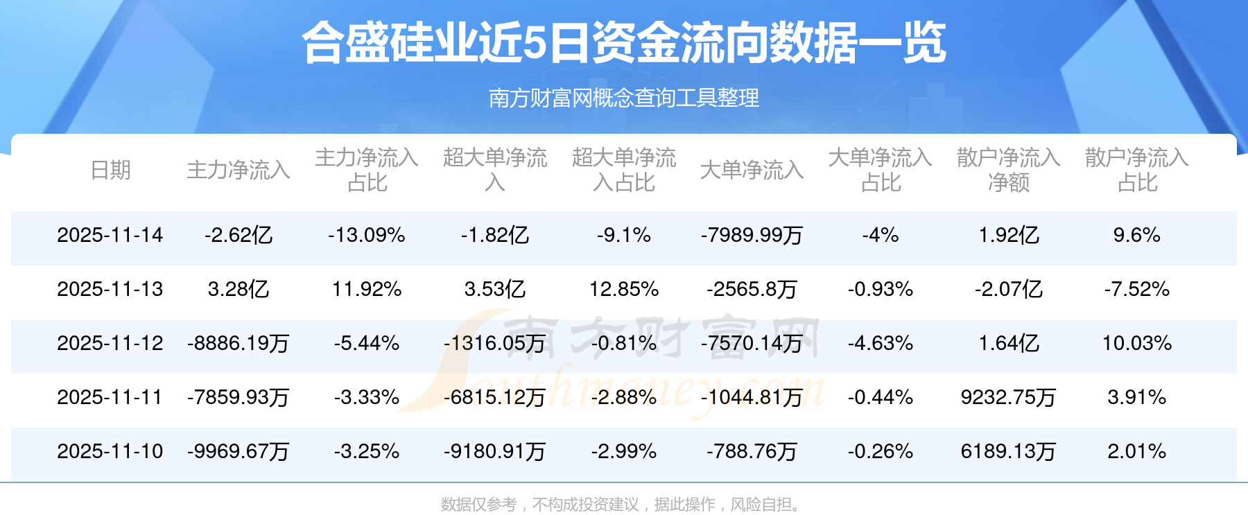 11月14日消息,合盛硅業(yè)11月14日主力凈流出2.62億元,超大單凈流出1.82億元,大單凈流出7989.99萬元,散戶凈流入1.92億元。
