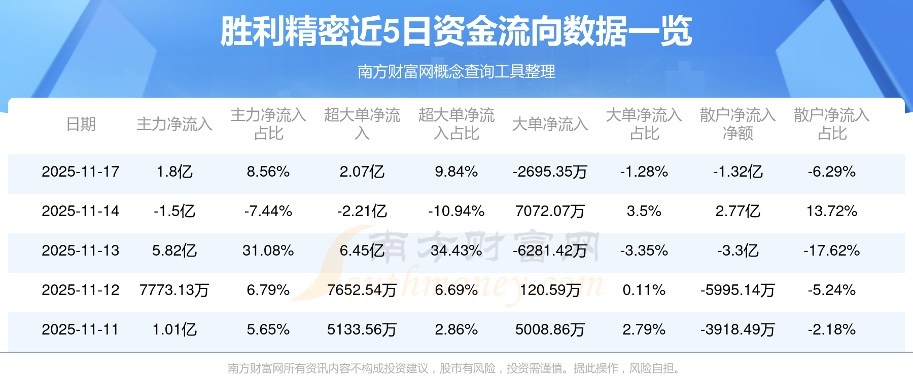 11月17日消息,勝利精密資金凈流入1.8億元,超大單資金凈流入2.07億元,換手率15.55%,成交金額21.07億元。