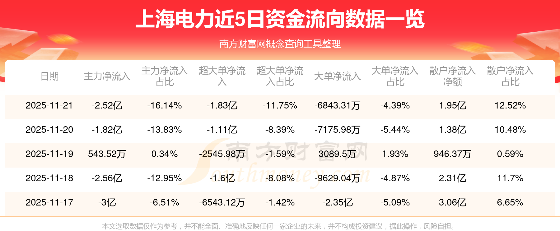 11月21日消息,上海電力資金凈流出2.52億元,超大單資金凈流出1.83億元,換手率2.21%,成交金額15.19億元。