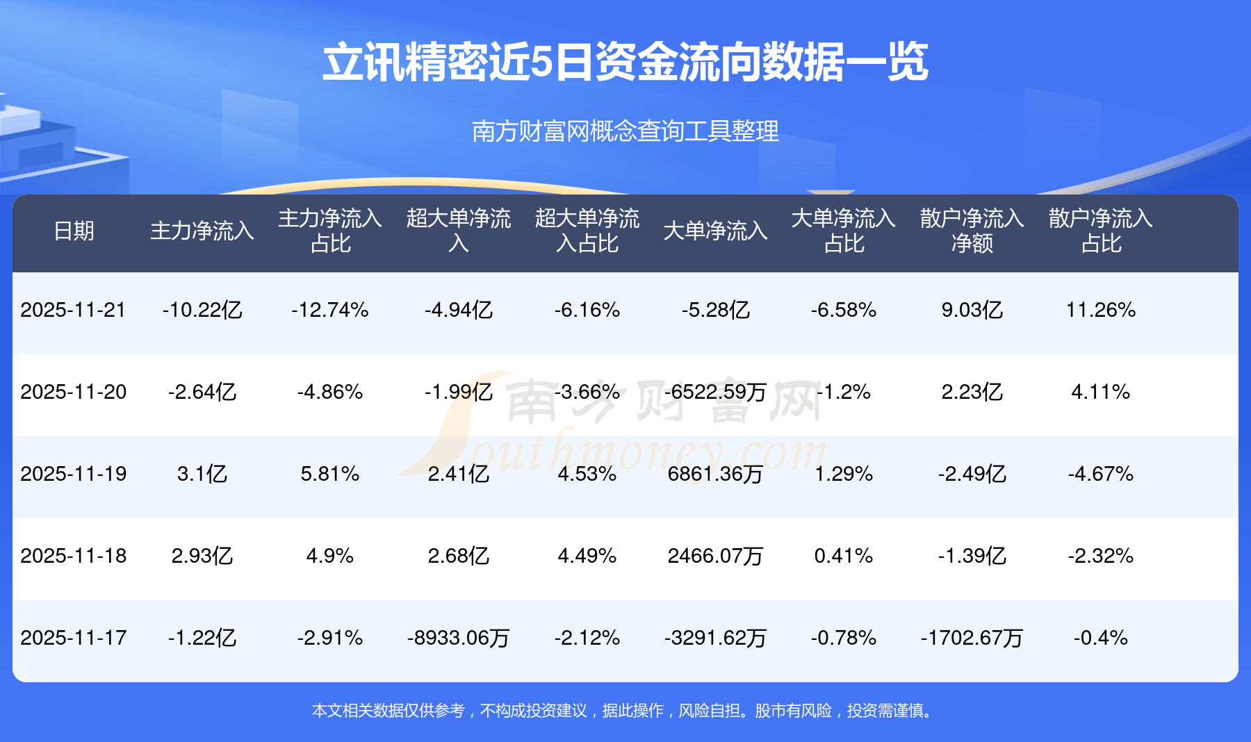 11月21日資金凈流出10.22億元,超大單凈流出4.94億元,換手率2.06%,成交金額80.21億元。