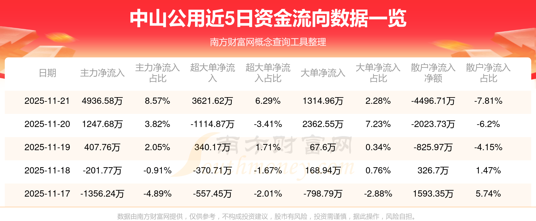 資金流向數(shù)據(jù)方面,11月21日主力資金凈流流入4936.58萬(wàn)元,超大單資金凈流入3621.62萬(wàn)元,大單資金凈流入1314.96萬(wàn)元,散戶(hù)資金凈流出4496.71萬(wàn)元。