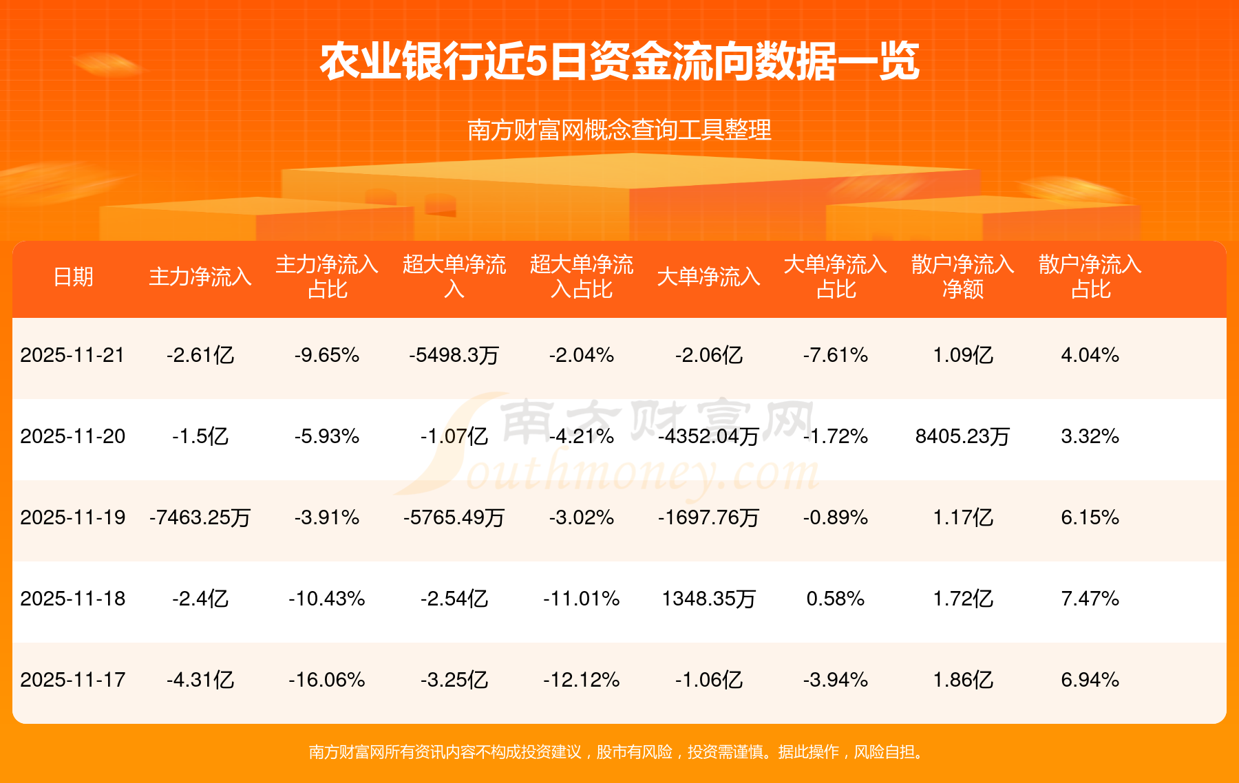 11月21日主力資金凈流出2.61億元,超大單資金凈流出5498.3萬(wàn)元,換手率0.1%,成交金額26.99億元。