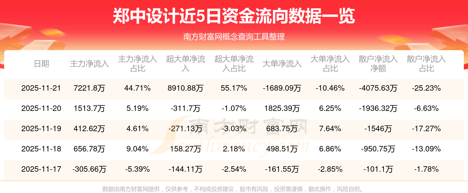 11月21日資金凈流入7221.8萬元,超大單凈流入8910.88萬元,換手率3.96%,成交金額1.62億元。