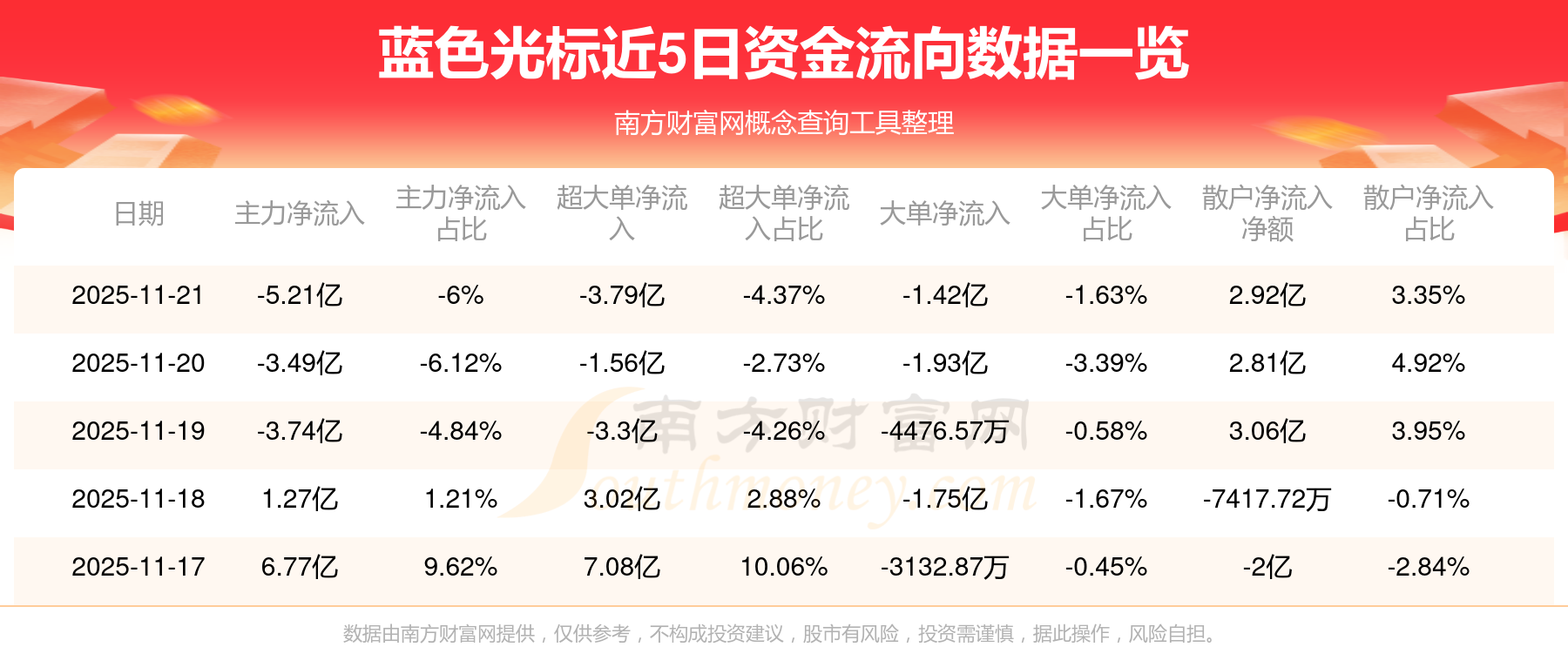 近5日資金流向一覽見下表: