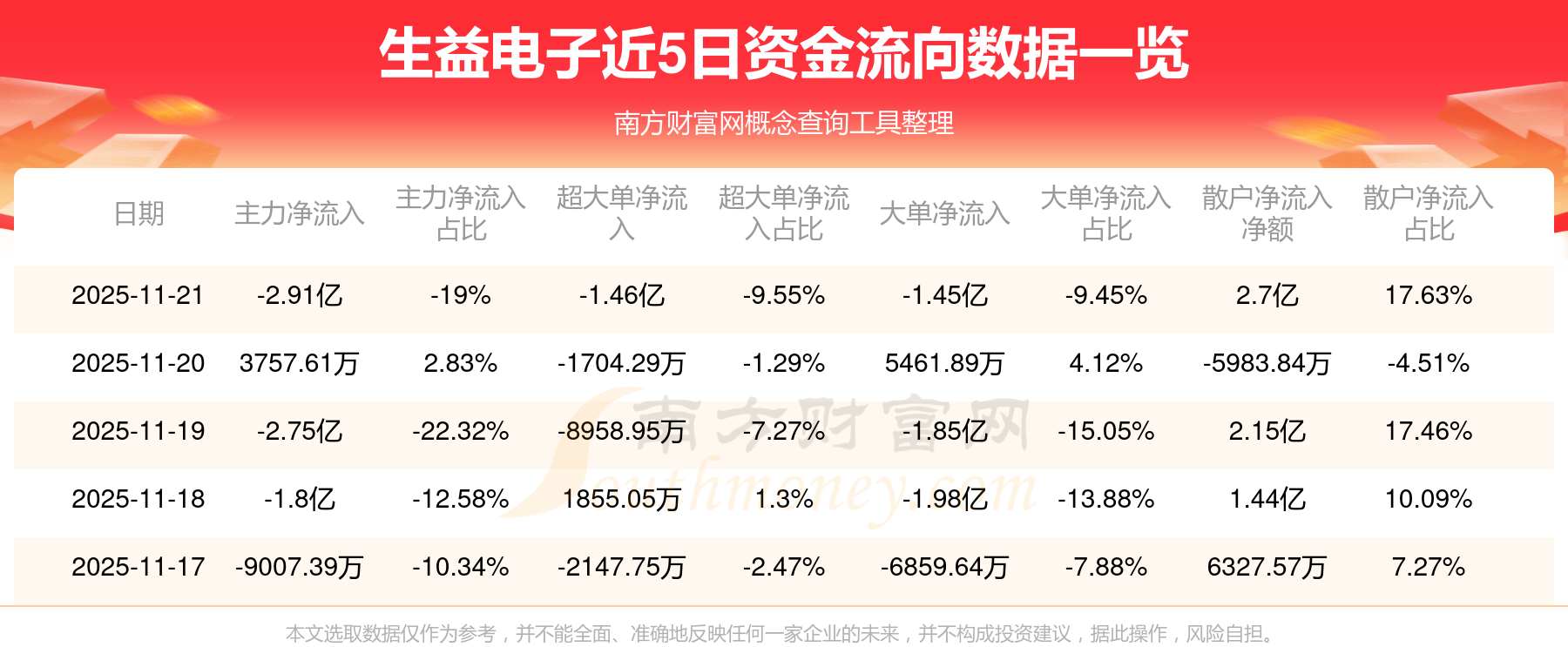 11月21日消息,生益電子11月21日主力凈流出2.91億元,超大單凈流出1.46億元,大單凈流出1.45億元,散戶凈流入2.7億元。