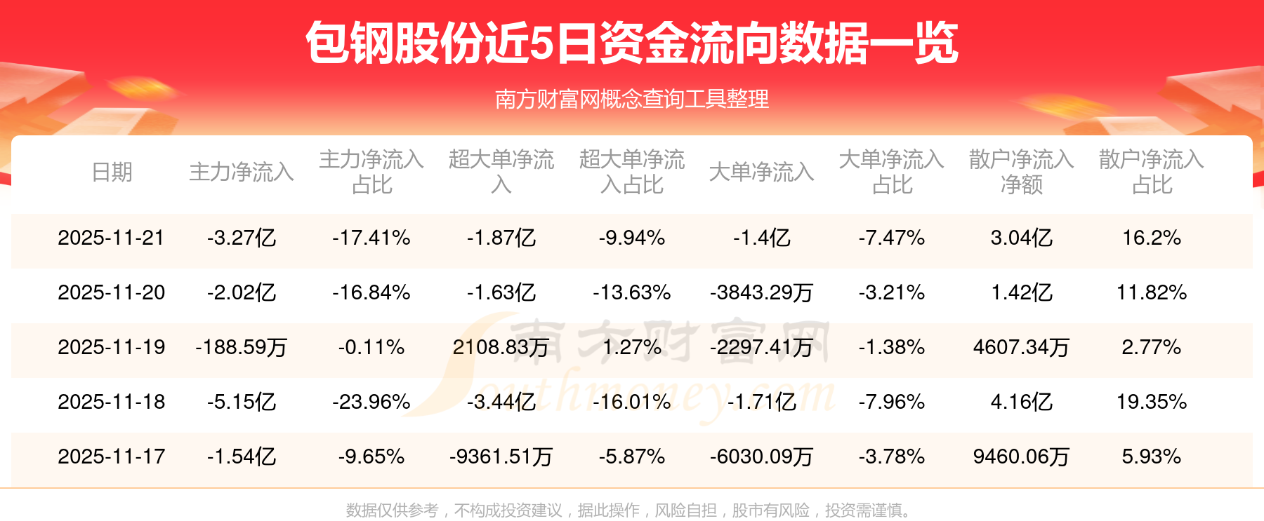 11月21日該股主力凈流出3.27億元,超大單凈流出1.87億元,大單凈流出1.4億元,中單凈流入2284.43萬元,散戶凈流入3.04億元。