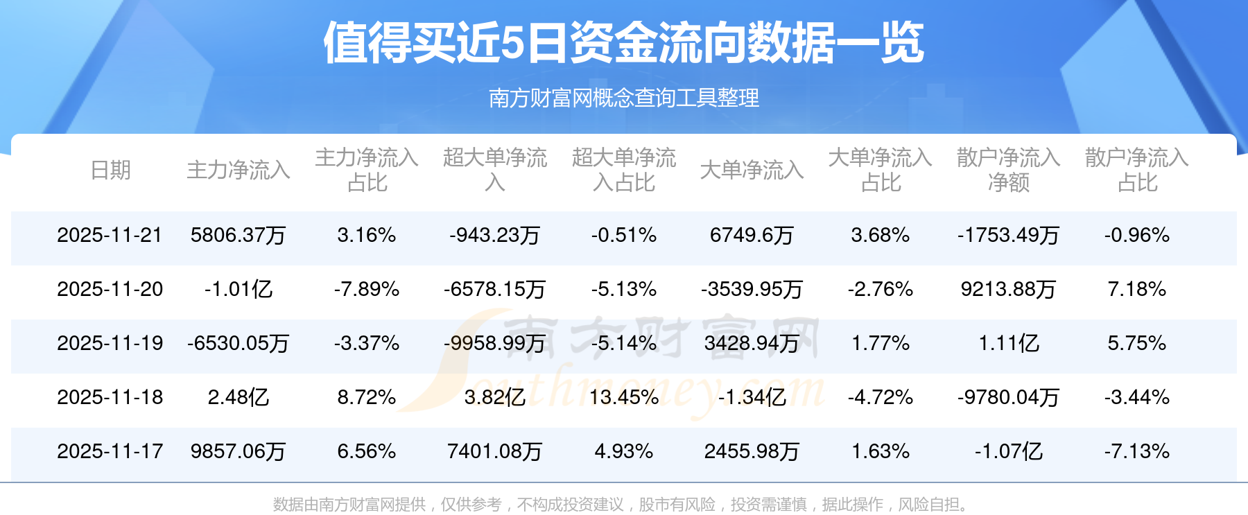 近5日資金流向一覽見(jiàn)下表: