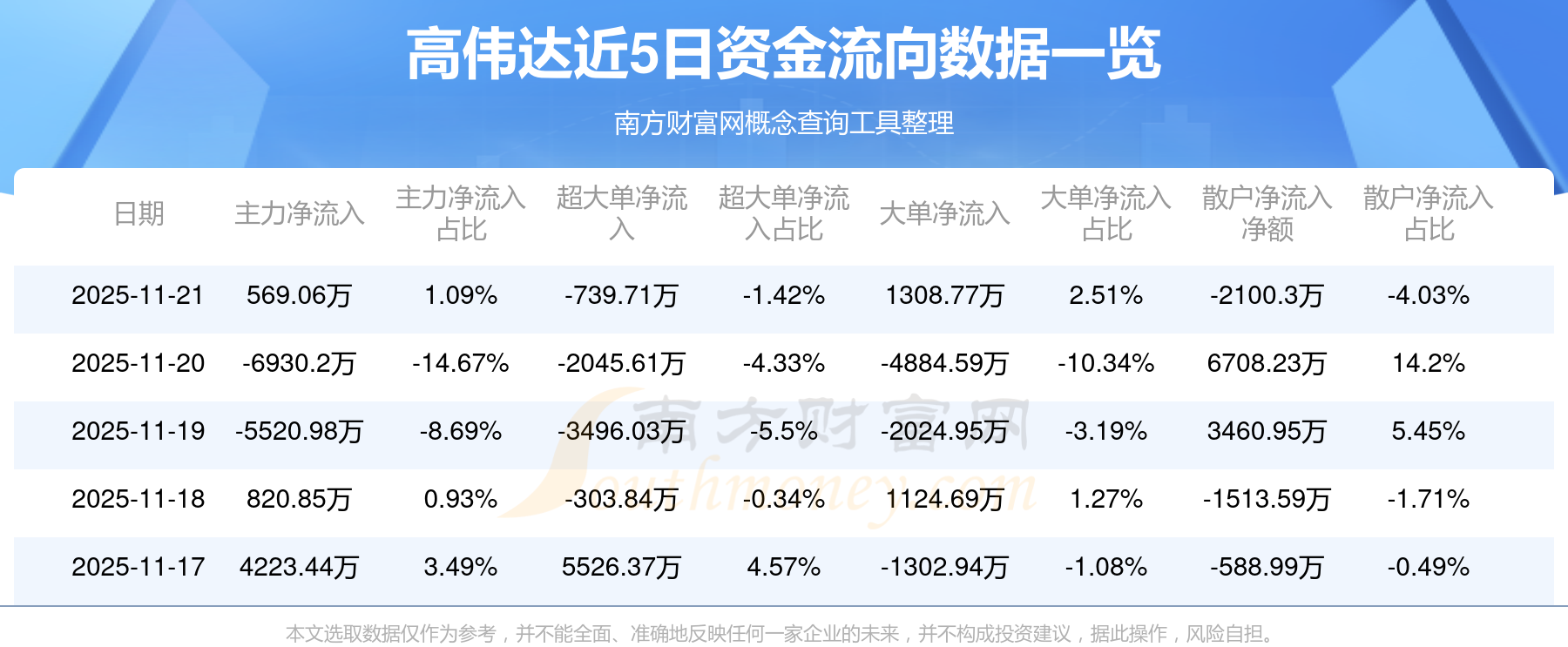 11月21日該股主力資金凈流入569.06萬元,超大單資金凈流出739.71萬元,大單資金凈流入1308.77萬元,中單資金凈流入1531.25萬元,散戶資金凈流出2100.3萬元。