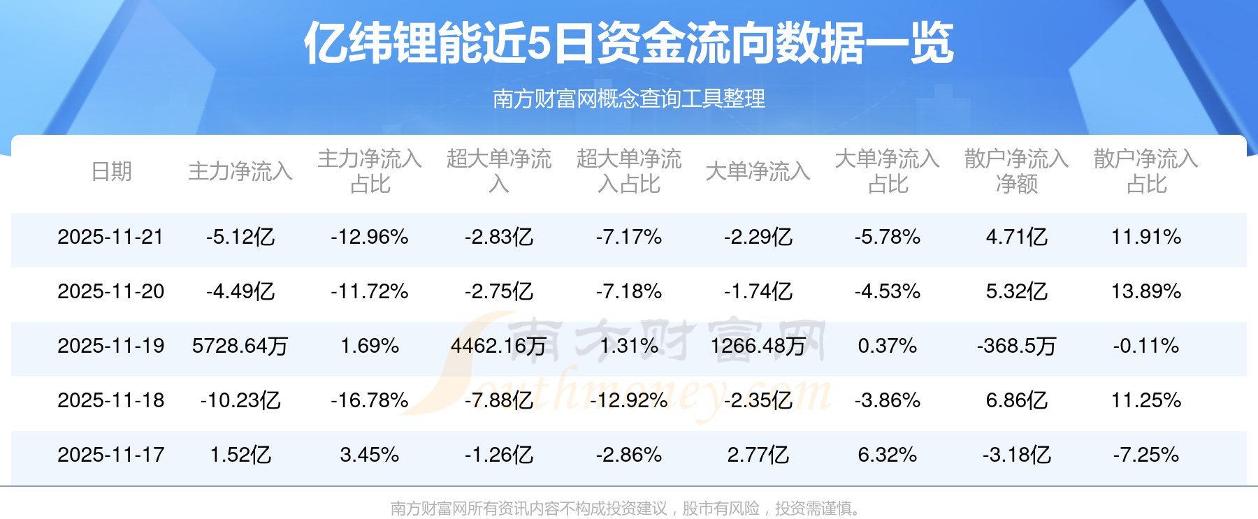 11月21日消息,億緯鋰能11月21日主力資金凈流出5.12億元,超大單資金凈流出2.83億元,大單資金凈流出2.29億元,散戶資金凈流入4.71億元。