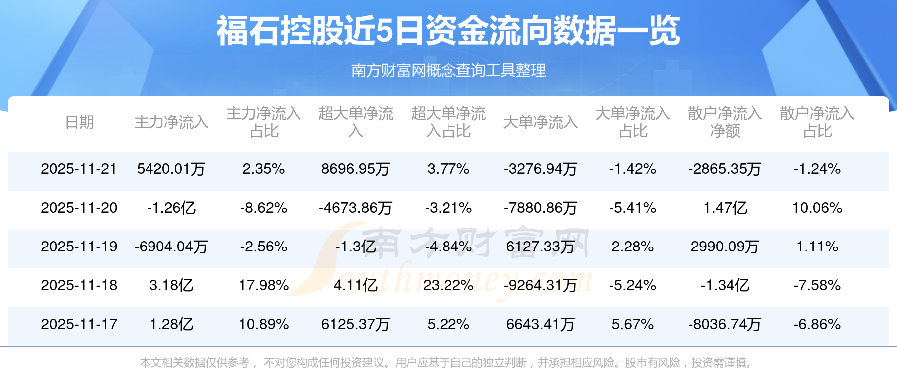 截至11月11日15時收盤,福石控股報7.240元,跌6.96%,換手率33.82%,成交量3.2億手,市值為69.79億元。