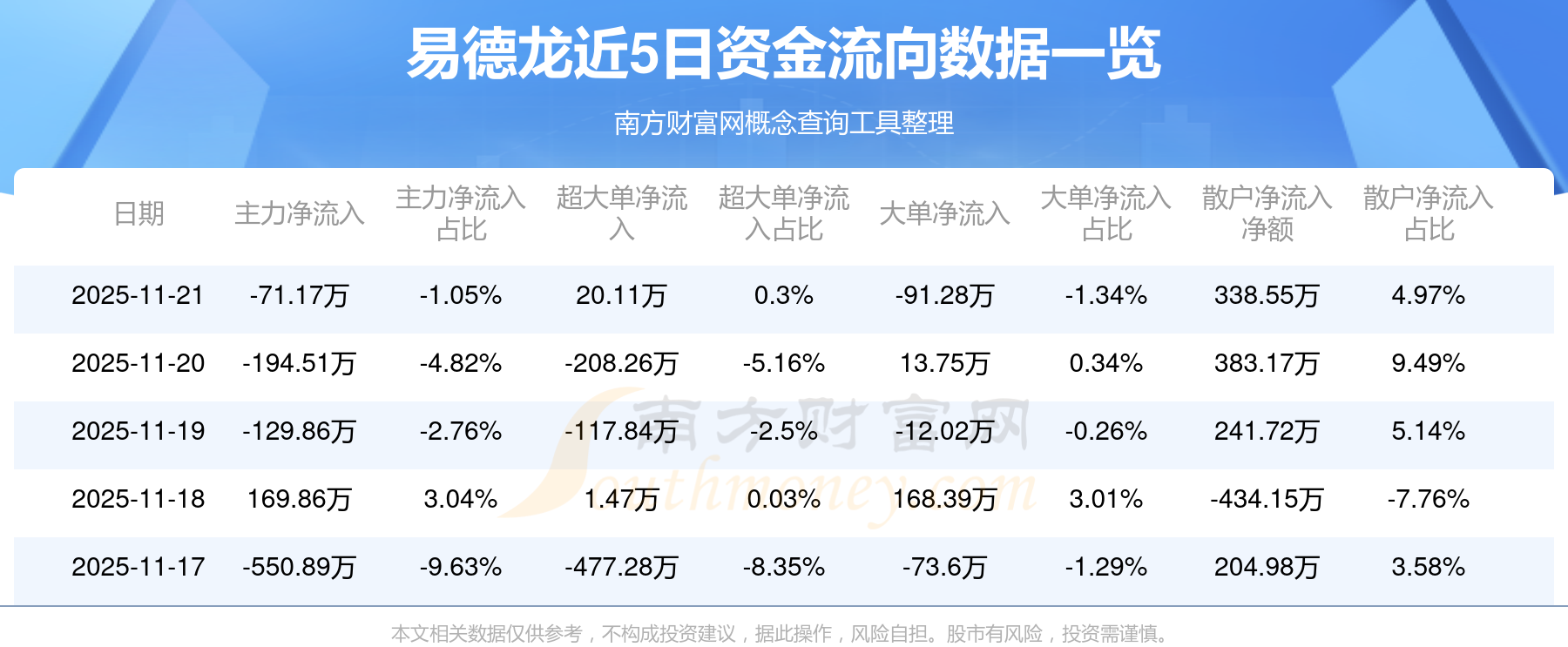 11月13日消息,易德龍今年來漲幅上漲28.68%,最新報(bào)35.040元,漲0.13%,成交額6809.28萬元。