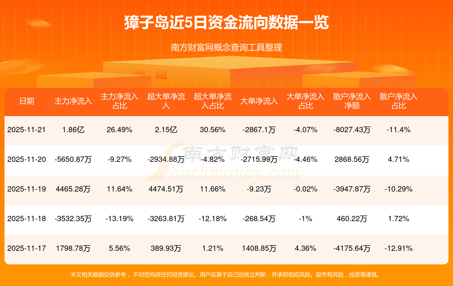 近5日資金流向一覽見下表: